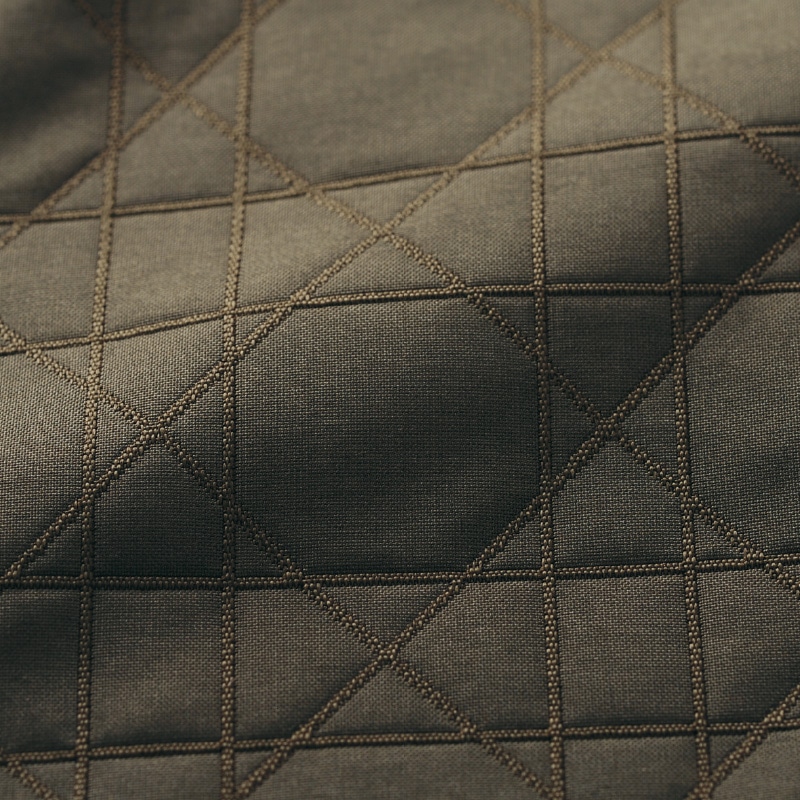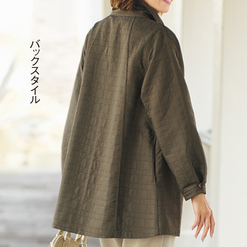 キルティングステッチのような柄をジャカード生地で表現した一枚仕立てのコート。 Aラインシルエットのすらっとした広がりで、スタイリッシュに着こなせます。