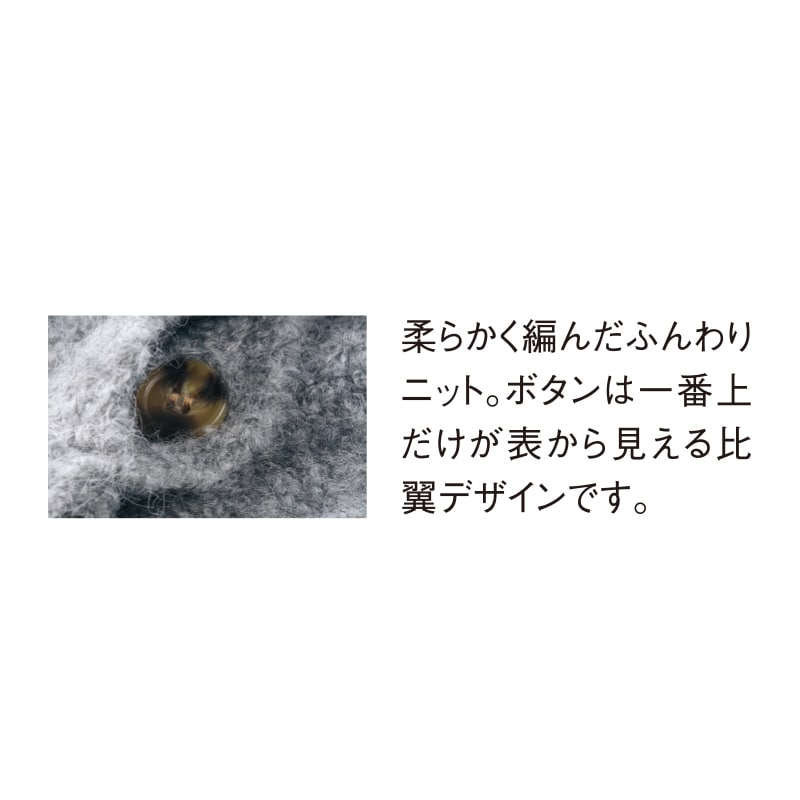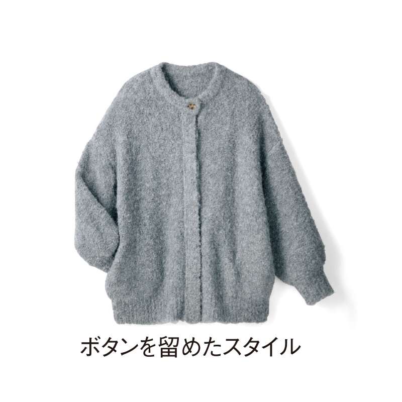 - 着るたびに心も和らぐブークレー糸のカーディガン。