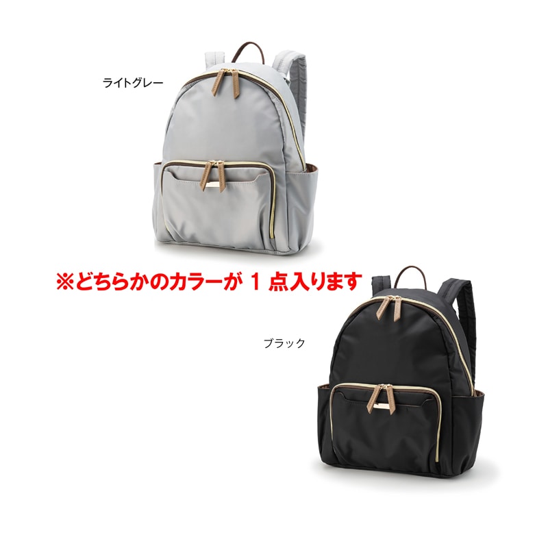 「毎日が発見」背中夏ひんやり冬あったかリュック:セット内容/バッグ本体、メッシュポケットパーツ(取り外し可) 素材/本体:ポリエステル、裏地:ポリエステルサイズ、重量(約)/450g、仕様/開閉:天ファスナー式、外装:オープンポケット3、ファスナーポケット1、ファスナーポケット1(内側オープンポケット3、ペン差し1)内装:オープンポケット2、ペットボトル用ポケット1、ファスナーポケット1、本体直通ファスナーポケット1、(約)/幅25.5×マチ10.5×高さ32cm、中国製