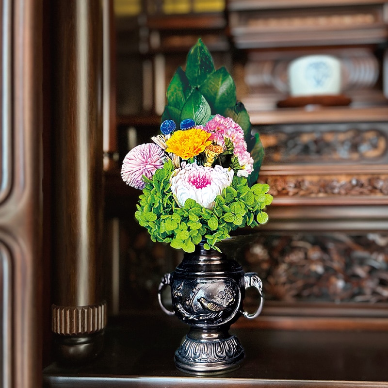 - 生花のようなみずみずしい質感を長く保つ国産のプリザーブド仏花。