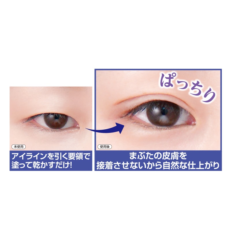 塗った部分が引締められながら皮膜を作り、塗られていないところと境目が生まれ、塗った部分がまぶたの下に折り込まれることでナチュラルな二重まぶたが演出できます。