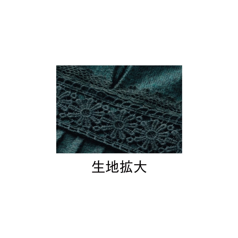 ぬくもりある微起毛の織生地を使用し、繊細な花レース&ピンタックを施した胸元からギャザーでゆとりあるフレアシルエットを演出。袖口にもピンタックをあしらって華やかに。