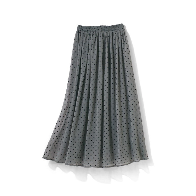 ほのかな透け感とシボ感のある生地に、フロッキープリントのドット柄が可愛らしい雰囲気。