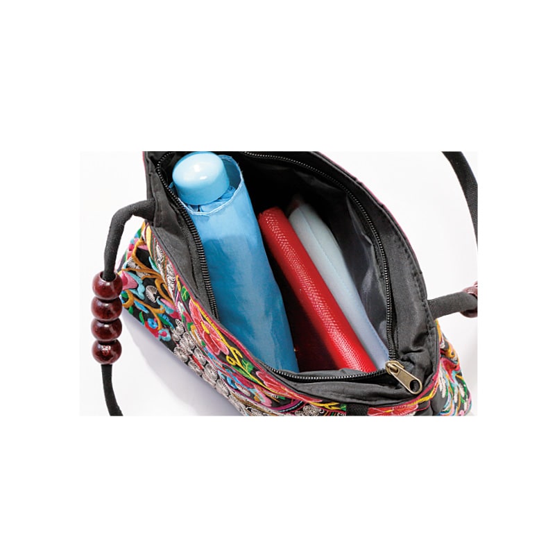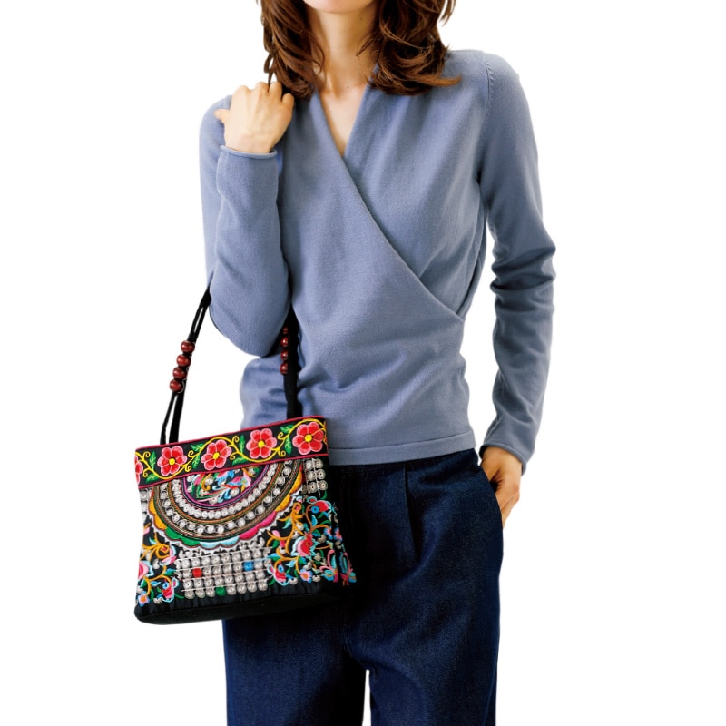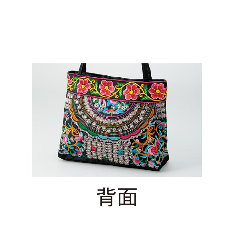 色/ブラック系 サイズ(約)/タテ22×ヨコ28×マチ11㎝ 持ち手立上がり:20㎝ 重量(約)/140g 素材/ポリエステル、綿、木仕様/ファスナー式開閉口 ※生産の都合により柄の出方が異なる場合があります。 中国製