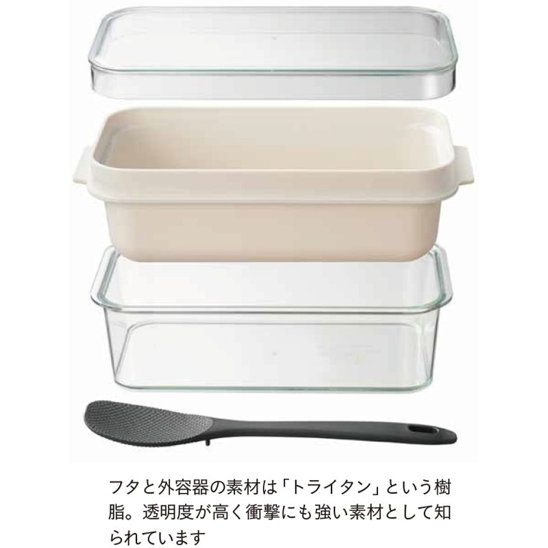 - セット内容/外容器、内容器、フタ、しゃもじ 主材/外容器・フタ:飽和ポリエステル樹脂(耐熱温度80℃・耐冷温度-20℃) 内容器・しゃもじ:ポリプロピレン(耐熱温度110℃・耐冷 温度-20 ℃) 重量(約)/ 560g サイズ(約)/幅29.6×奥行13.2×高さ10.5㎝ 日本製