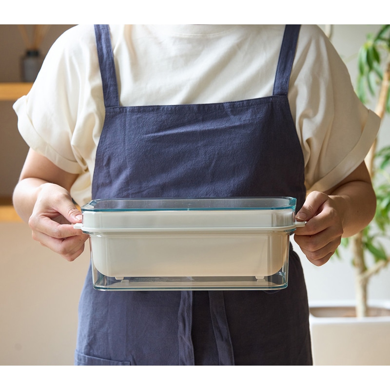 - 使いやすさを追求して開発されたぬかどこボックス。従来のぬか漬けで負担になりがちだった水抜きの手間や、毎回のかき混ぜで手が汚れるストレスを軽減するために、さまざまな工夫が施されています。