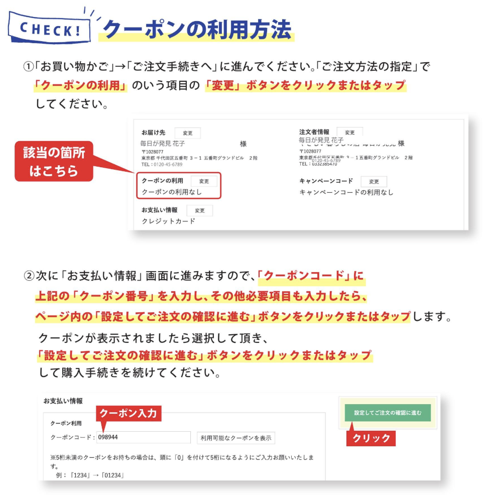 ※クーポンは「やさしい暮らしの店 by 毎日が発見」でのみお使いいただけます。